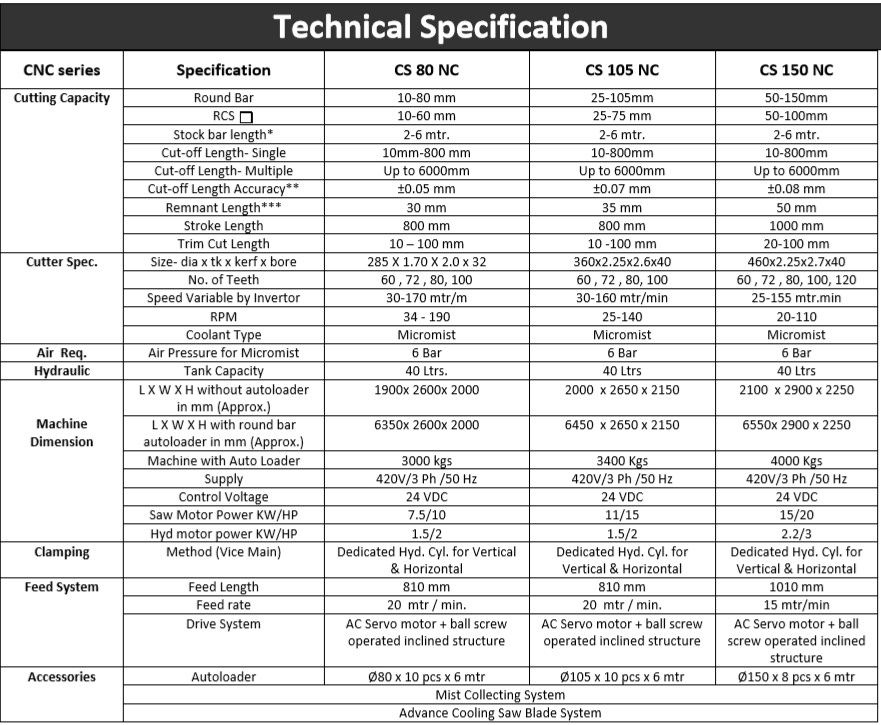 Capstone India is among the first companies in the world, which to design & establish maximum utilization of circular saw cutter size. Capstone CS80NC machine can cut dia 80mm solid metal bar with small cutter size of dia 285x2mm thick. This results in cutter stability during cutting operation & also reduces tooling cost.