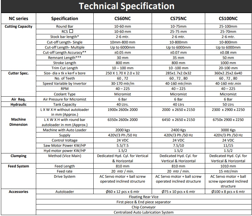 Capstone India is among the first companies in the world, which to design & establish maximum utilization of circular saw cutter size. Capstone CS60NC machine can cut dia 60mm solid metal bar with small cutter size of dia 250x2mm thick. This results in cutter stability during cutting operation & also reduces tooling cost.
